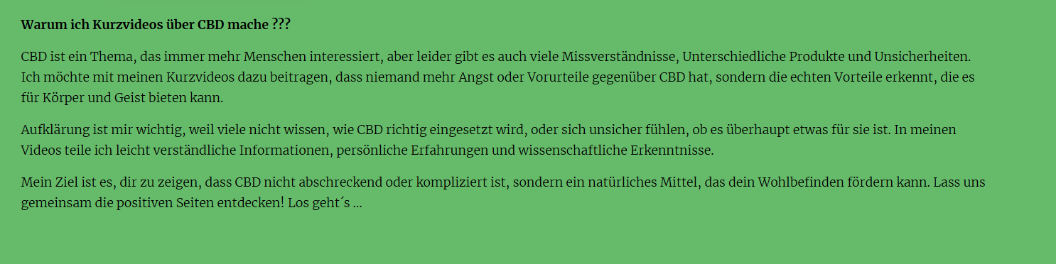 Mein Ziel ist es, Klienten und Patienten, sowie Angehörigen, Pflegekräften & Tierbesitzern Zugang zu den besten CBD Produkten zu ermöglich.